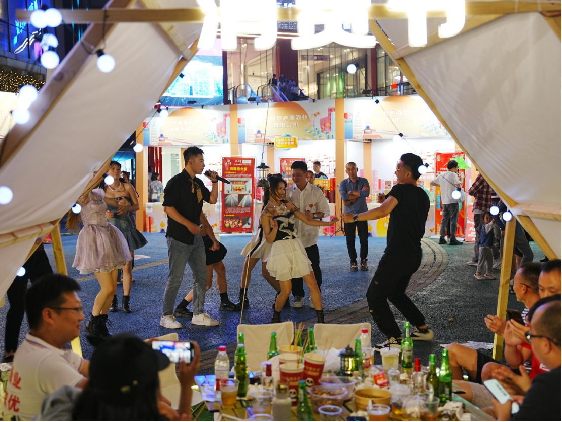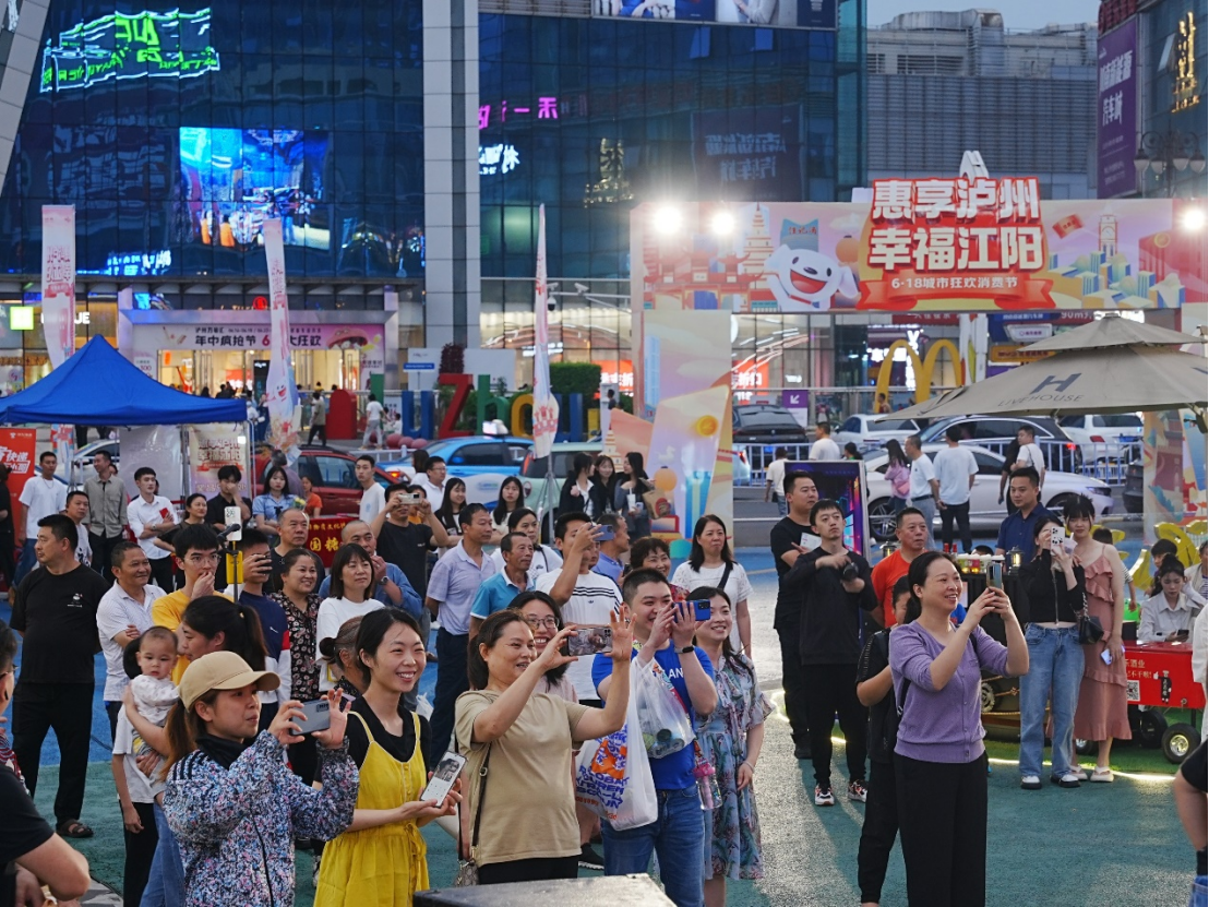 6月17日下午6点,夜幕还未降临,充满了网感的泸州佳记酒广场“烟火气”已经拉满。随着京东“618”狂欢消费节的到来,一场年度饕餮盛宴开启,精彩展演、美味珍馐、星光夜市,好看好吃好耍,简直嗨翻天。