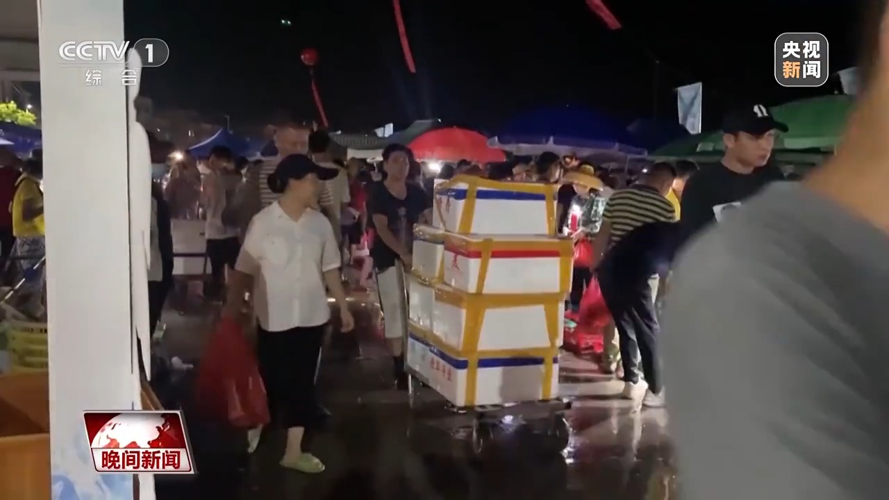 在广东湛江,凌晨四点,鱼市中的吆喝声已经此起彼伏了。一桶桶虾、一筐筐鱼,渔民和食客头戴顶灯,在夜色中迅速挑选。食客拿着自己提前准备好的塑料桶,收获满满。
