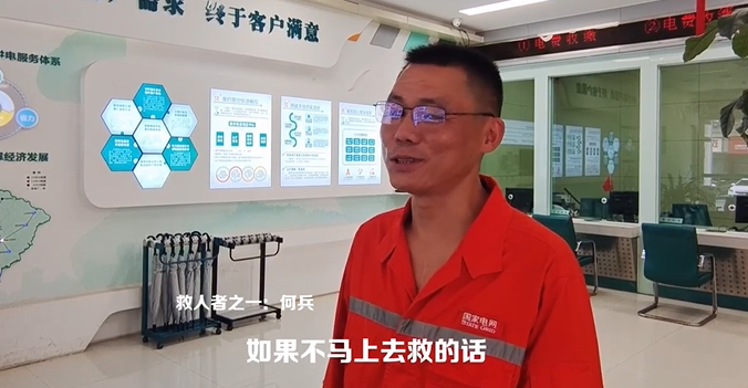 在确认落水者全部安全,救援人员赶到后,何兵简单处理了被划伤处便和同事便默默离开了现场,继续前往客户家中处理报修故障。