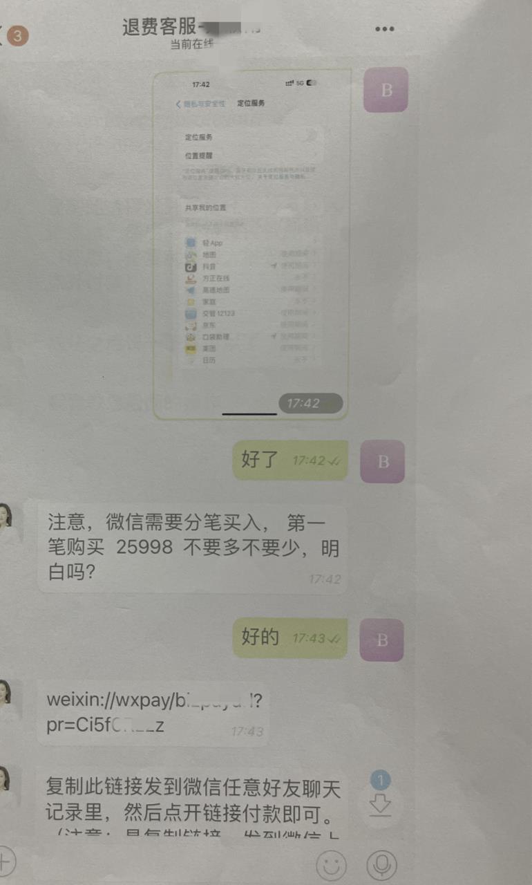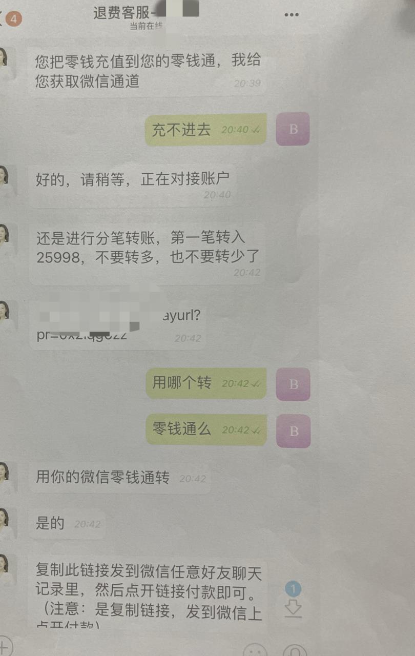 随后,刘女士在“客服”提供的流程指引下,开始往对方提供的银行账号转账,不久就收到对方承诺的金额,这也让刘女士更加相信这样的退费方式。在“客服”的诱导下,刘女士又转入多笔钱款,且数额越来越大,但是却无法提现了。“客服”告诉刘女士,因为其没有按照指引正确操作,导致账户异常,需要转款激活数据。