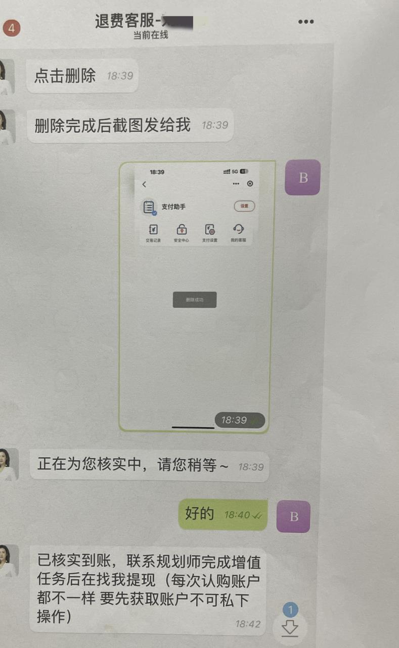日前,家住成都龙泉驿区的刘女士接到一条虚拟网络号码发来的退费短信,称其此前购买的教育培训网课现在可以退费,消息内还附带了一个QQ群号。想到有机会成功退款,刘女士按照短信提示加入了退费QQ群,并点击了群内链接下载了App。App“客服”告诉刘女士,只需要按步骤完成相应任务,完成一笔提现即可退一部分学费。