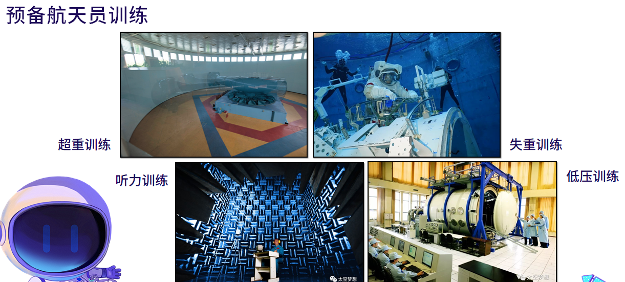 中国第一批航天员从1500多人里最终选出了12+2人。要当宇航员,还要测试空间意识、数字记忆、图形记忆、专注力、心算等能力;而预备航天员还要经历超重、低压、失重、听力等训练,“超重训练,相当于背着七八个人训练,听力训练则是要在杂乱的声音中找到你要找的声音等。”此外,还有溶洞训练、隔绝训练、生存训练等等。