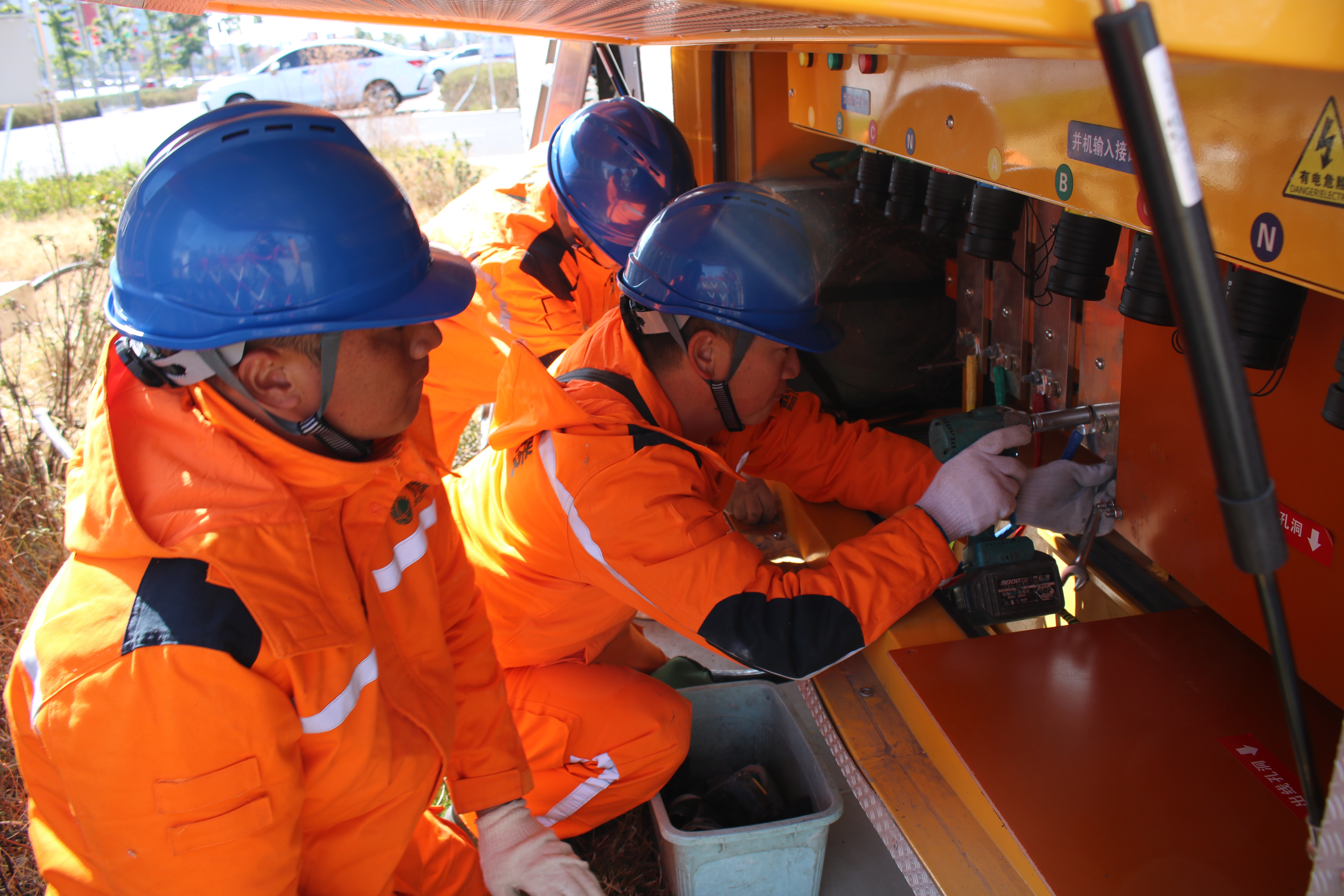 保电工作人员在西昌西站保电现场搭接临时电源