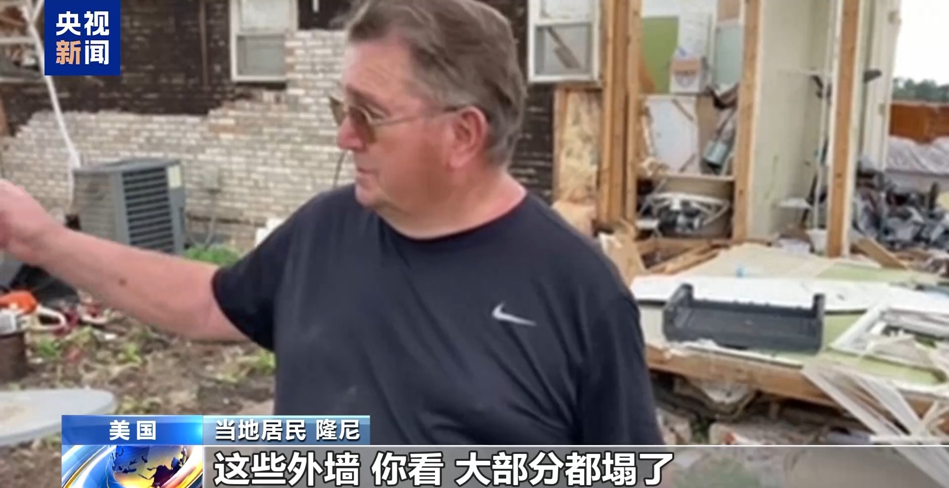 当地居民 隆尼:这些外墙,你看,大部分都塌了。我身后的那面墙还立着,但可以看到已经变形了。