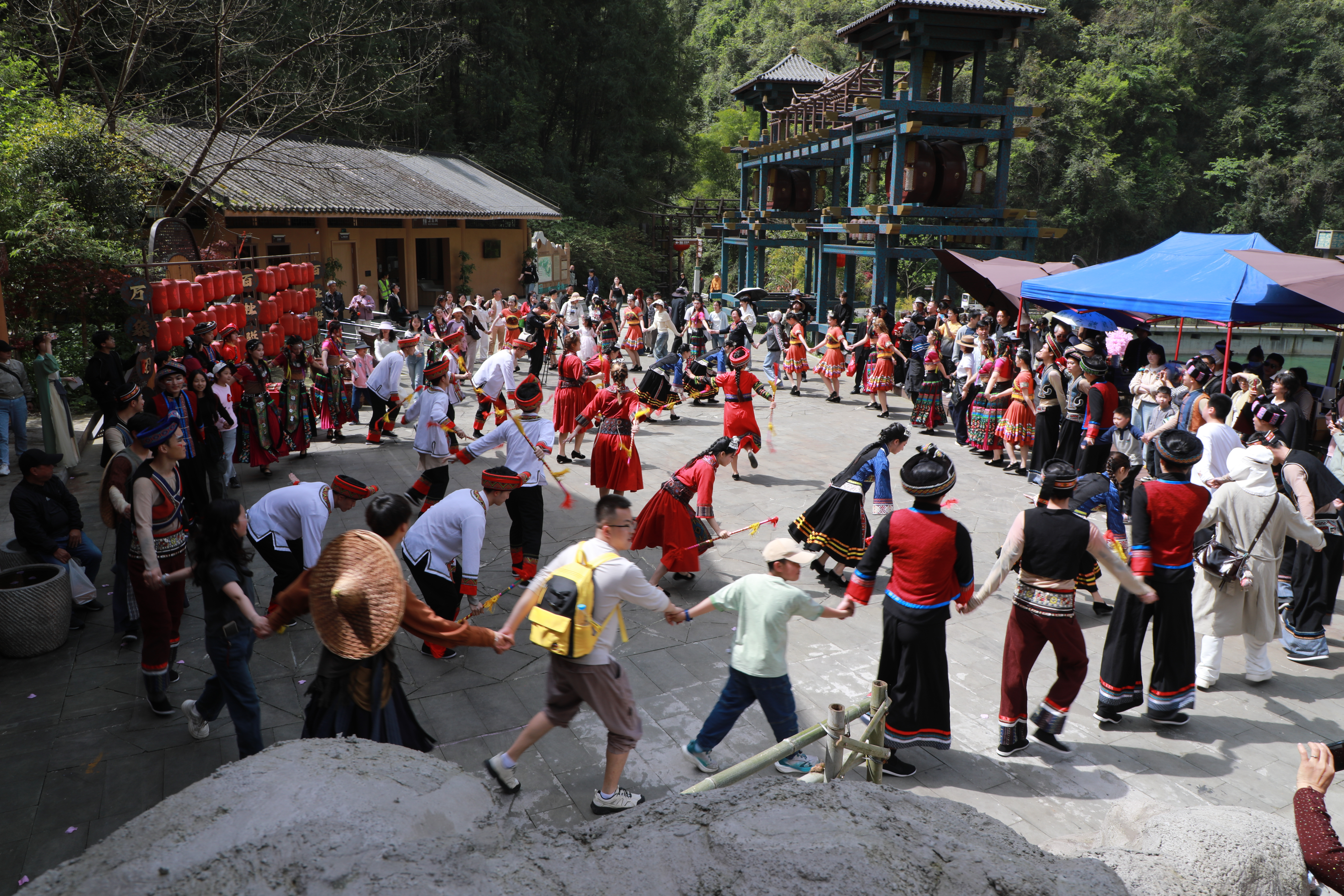 4月4日,巴山大峡谷桃溪人家景点暖意融融,《祈福巴山 万物共生》实景演艺如期上演。演出深度挖掘“巴山、巴水、巴人”文化内核,分为歌、舞、祈、福四大篇章,生动还原了巴人春耕劳作、祈福纳祥的传统生活图景。依托峡谷山水自然肌理搭建舞台,山水为幕、人文为魂,游客可全程参与其中,在沉浸式体验中读懂巴人文化的内涵。