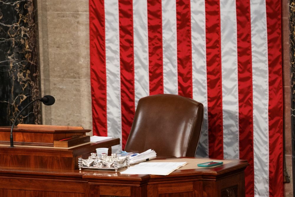 这是在美国华盛顿国会拍摄的众议院议长座位(10月18日摄)。新华社发(亚伦摄)