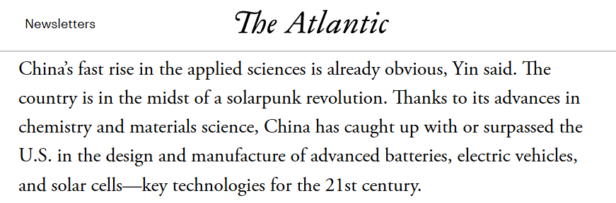 美国《大西洋月刊》杂志网站近日刊文指出,中国在全球科研版图中的位置正在迅速上升。这种上升已不只体现在论文数量增加上,而是越来越多地表现为科研主导权增强、技术转化提速,以及面向未来产业的创新能力提升。