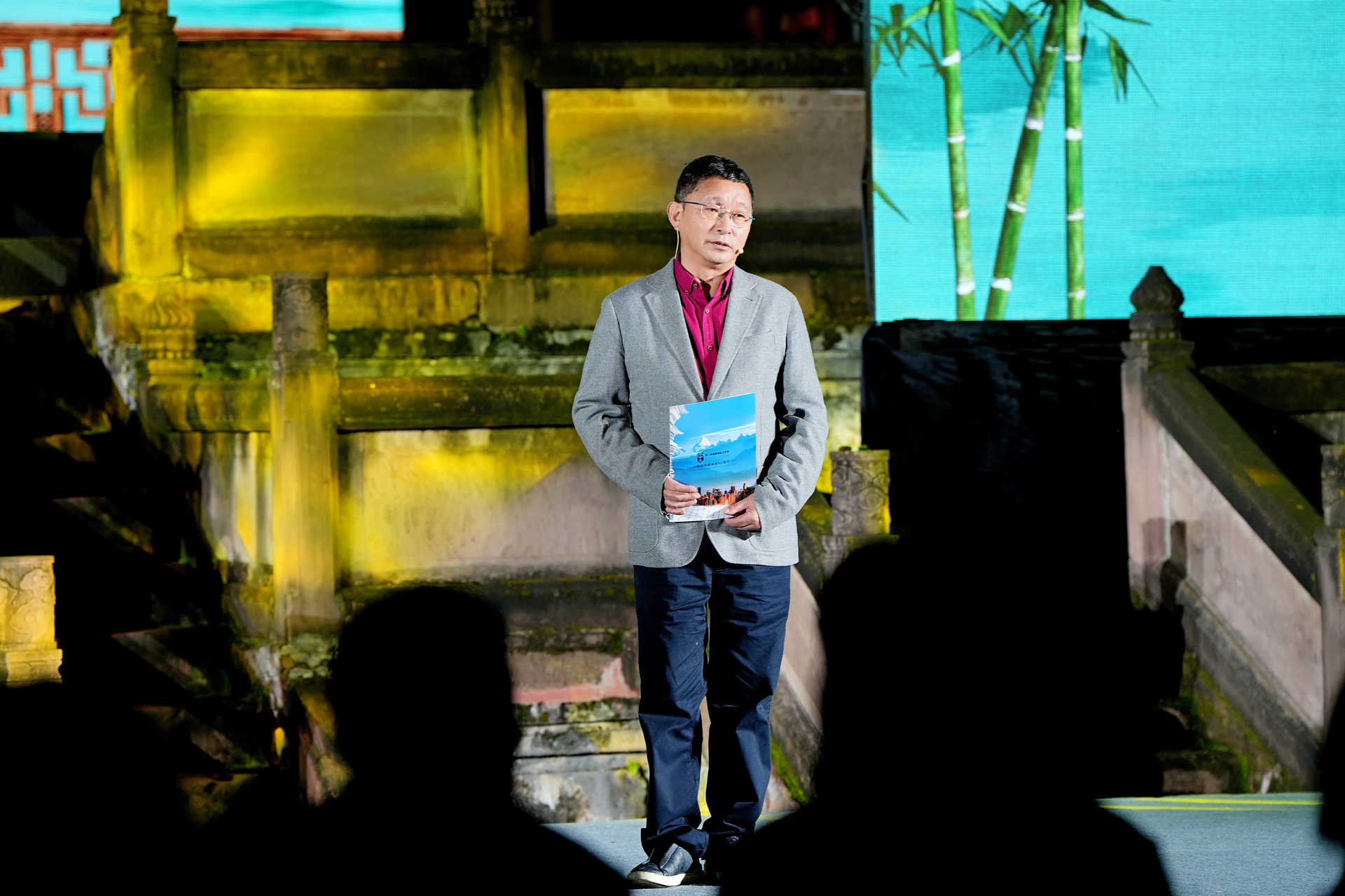 11月5日晚,2025第三届成都国际文学周开幕式暨第十届华语青年作家奖颁奖仪式在成都崇州罨画池隆重举行。恰逢陆游诞辰900周年,深秋时节的罨画池内灯火璀璨,文气涌动。一场融合“文学+实景演艺+数字光影”的沉浸式文化盛宴,成功串联起跨越九个世纪的诗人精魂与当代成都蓬勃的文学活力。