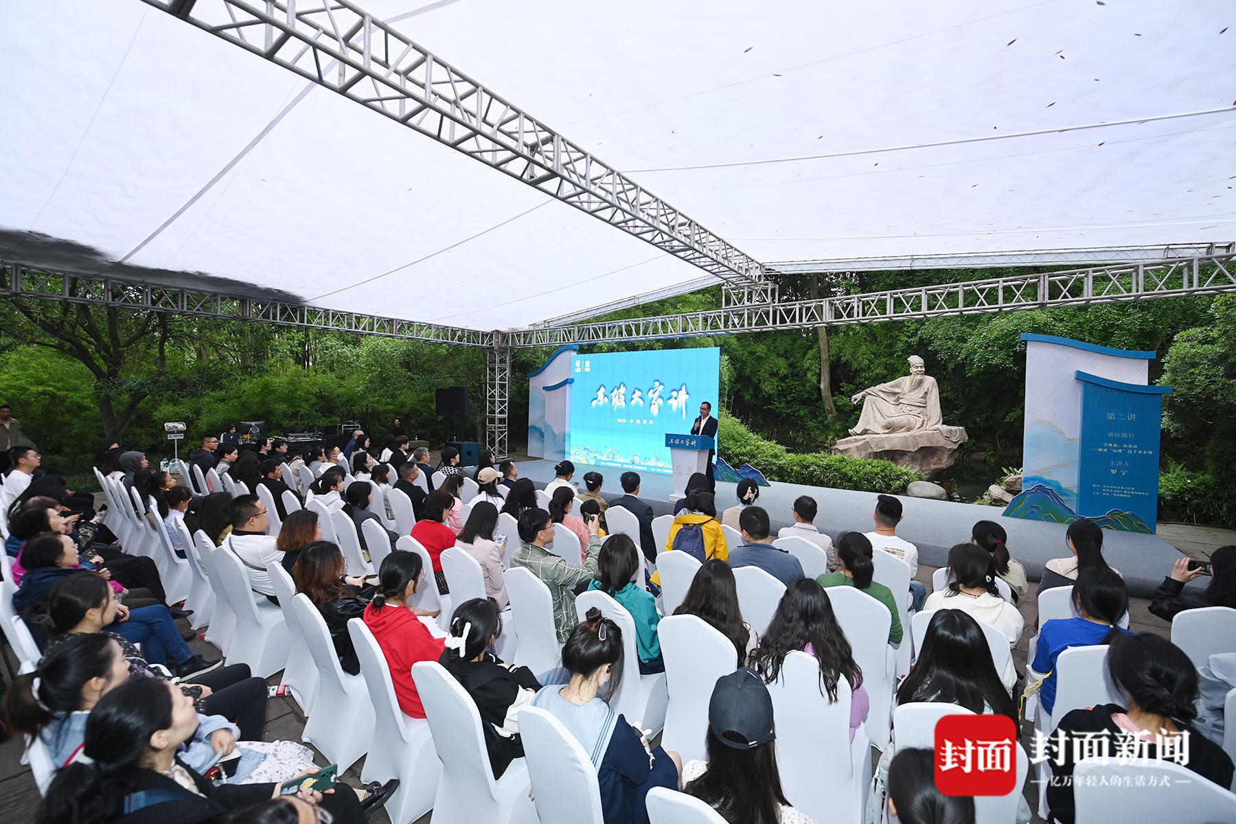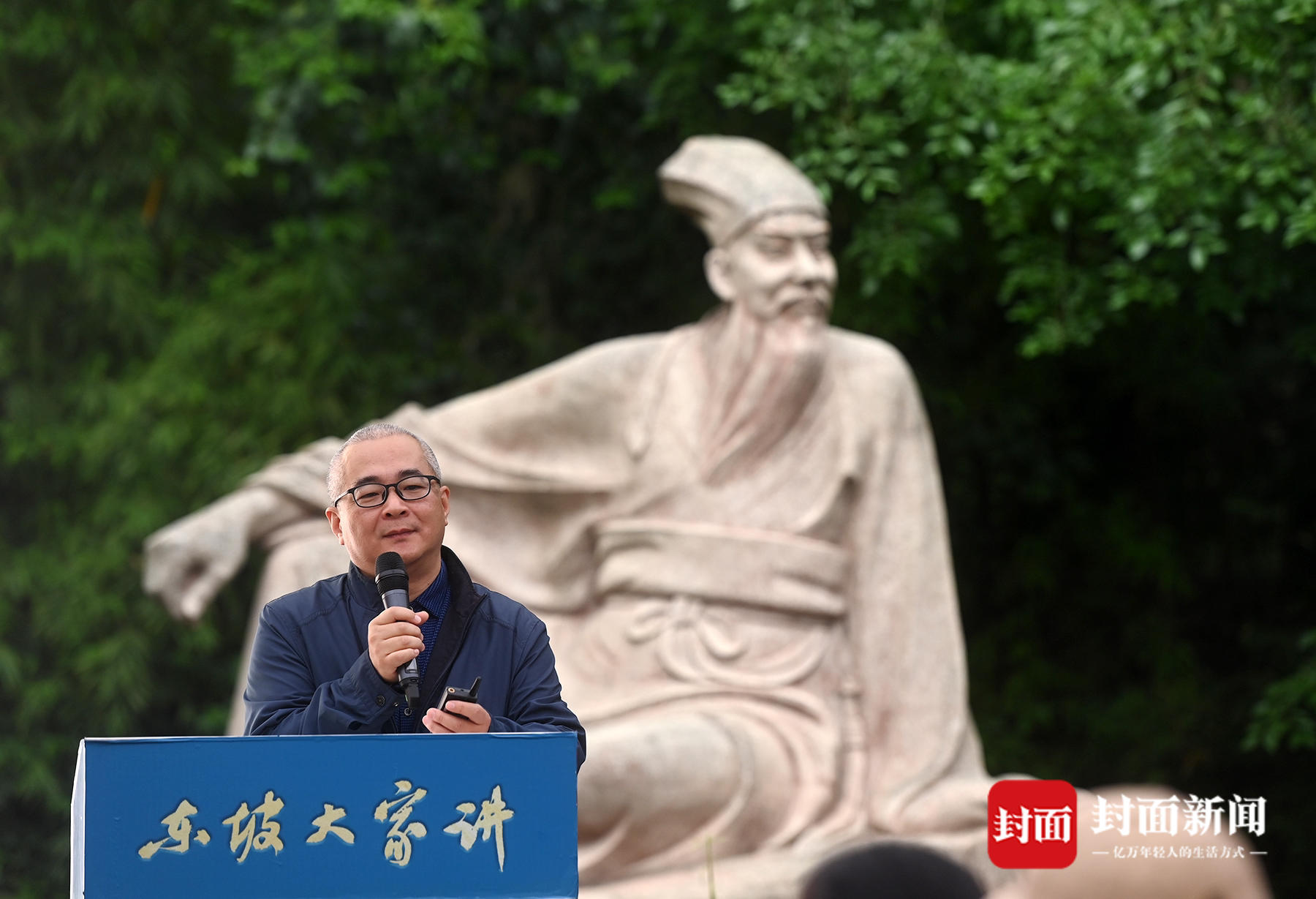 “他脑子里必须要装很多书的内容、知识、故事,那么用的时候,才能很快用上……”4月28日,眉山三苏祠博物馆东坡盘陀坐像前的广场,传来妙语连珠。倘若在此时步入广场,就能够在西南交通大学人文学院教授、博士生导师罗宁的带领下,解读苏轼诗中的经典典故和浩瀚的东坡文学海洋。
