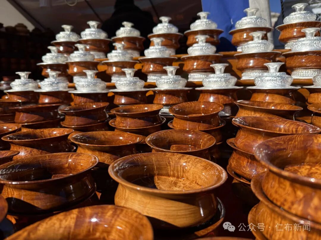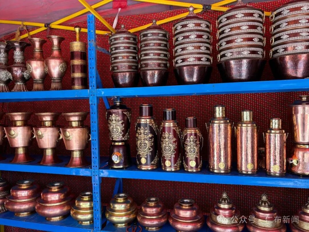 在年货市场同样引人注目的是各种木制品,摊位上,厚重的酥油木碗泛着温润的光,雕花精致的糌粑盒叠放整齐,“我每年罗萨前都来仁布县,已经有好几年了,生意也特别好!”摊位老板洛桑笑着说道。