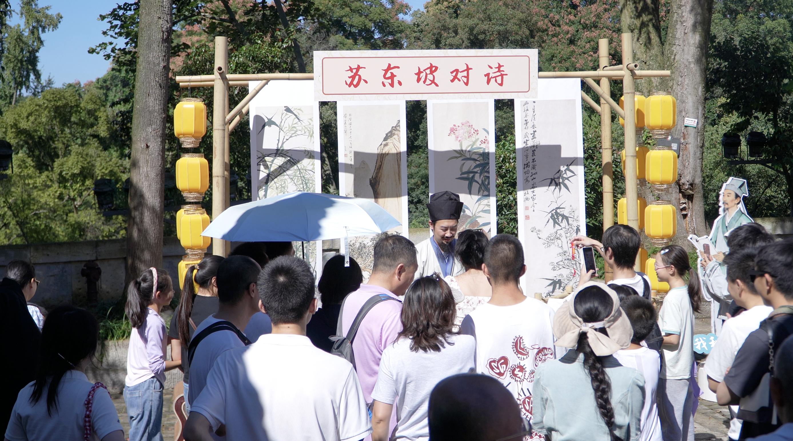 东坡楼内,“东坡伴游·诗词大赏”文化互动活动正酣。游客们或吟诵诗词,或聆听解说,沉浸在浓厚的文化氛围中。来自重庆的李女士深情朗诵《水调歌头》,赢得阵阵掌声。“仿佛能与东坡先生进行一场跨越千年的对话。”她感慨道。