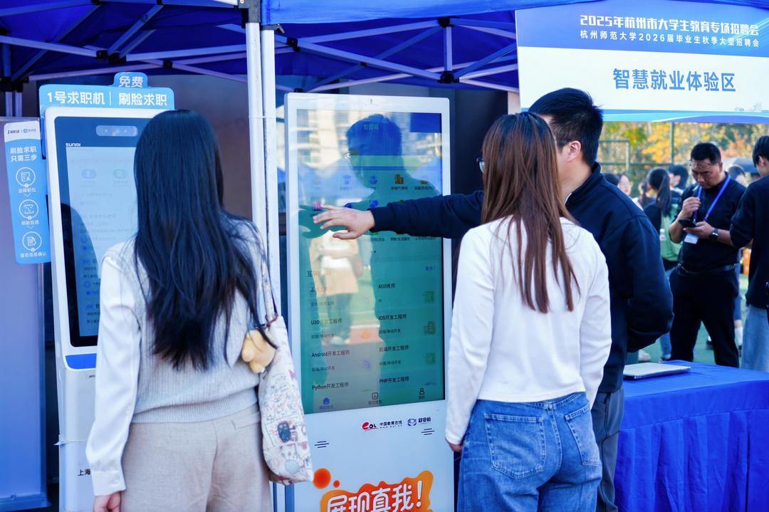 招聘会现场,杭州师范大学就业指导中心工作人员武瑶介绍,“从杭州各区县到湖州、金华、台州等周边地市区县,15家教育局所辖中小学,加上自主报名的各类企业,近400家用人单位带来了覆盖婴幼儿托育、中小学、职业学校、高等教育的各个学段的岗位。”除了传统各学科教师外,不少用人单位还招聘人工智能教育、STEAM教学等新兴领域岗位,为毕业生提供了多元择业空间。