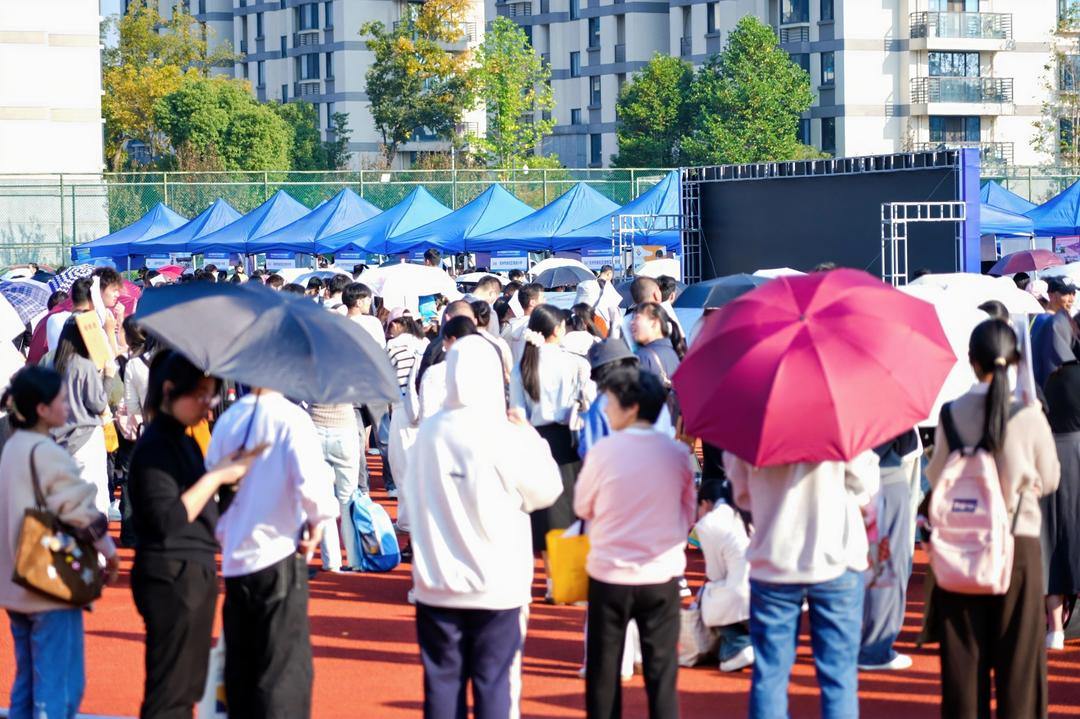 作为今年杭州市举办的首场教育专场大型招聘会,2025年杭州市大学生教育专场招聘会暨杭州师范大学2026届毕业生秋季大型招聘会开启。延续了往年的火爆态势,杭州师范大学、浙江师范大学、湖州师范学院、嘉兴大学、台州学院等省内多所高校的近万名毕业生慕名而来,入场队伍一度从校内体育场排到校门口……求职者们更是把杭师大仓前校区东体育场围得水泄不通。