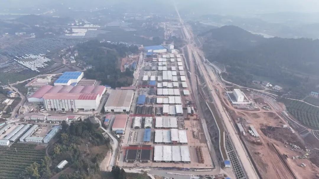 成渝中线高铁安岳制梁场位于四川省资阳市安岳县,承载了600孔箱梁的预制重任,其中包含535孔32米双线箱梁和65孔24米双线箱梁。