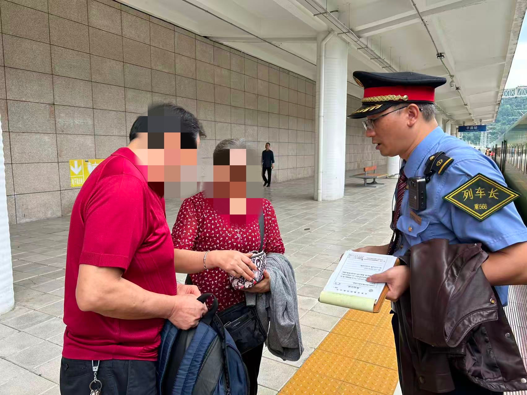 C734次列车抵达巴中站后,班组紧接着值乘的C701次列车会停靠平昌站,谭戎军便与张先生联系,约在平昌站面对面交接,“因为失物数额比较大,当面返还更稳妥些”。在C701次列车抵达前,乘警与乘务人员全程值守看护背包。