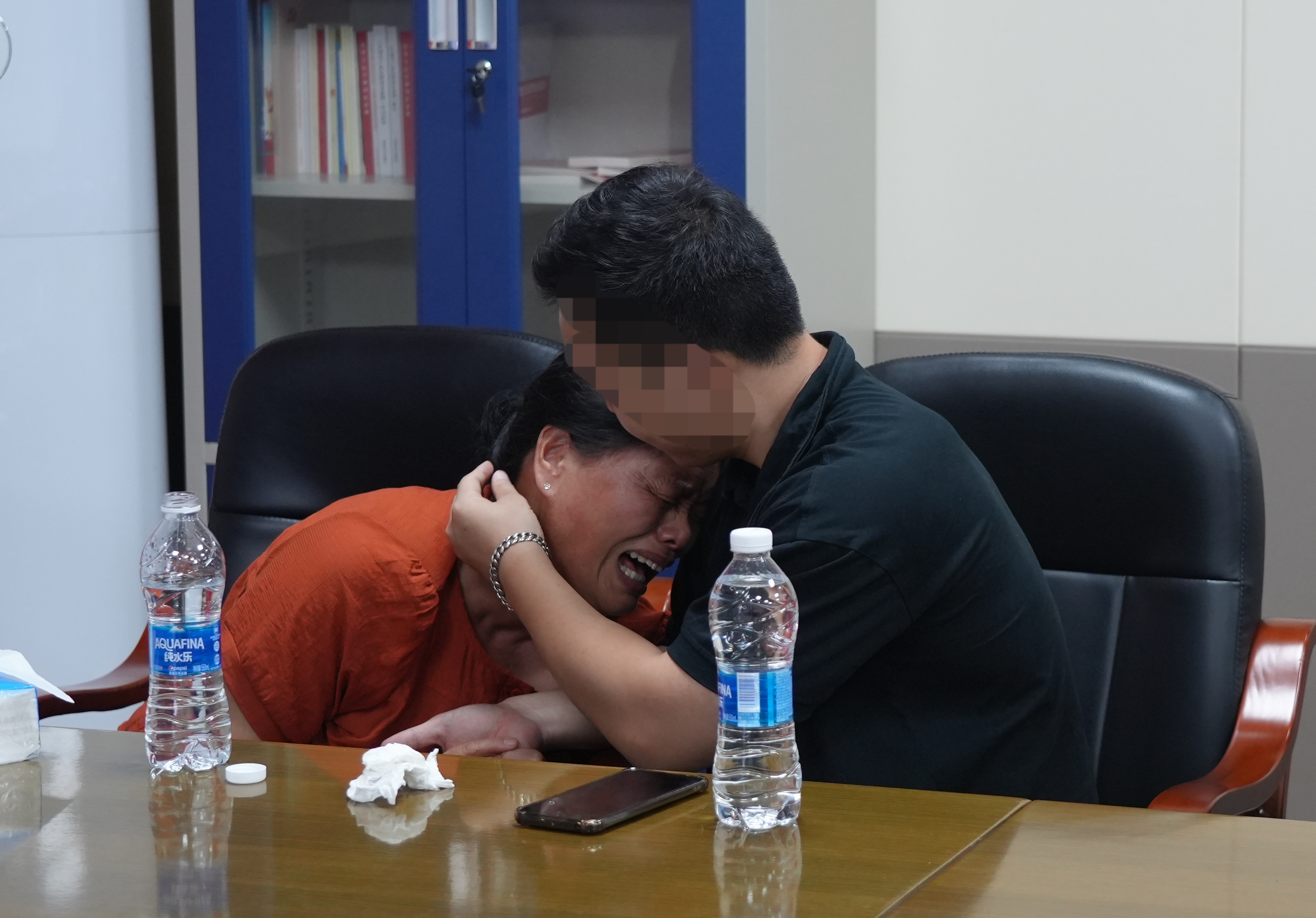 儿子安慰哭泣的张梅(化名)(图据中区公安)
